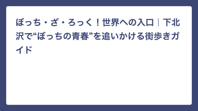 ぼっち・ざ・ろっく!世界への入口|下北沢で“ぼっちの青春”を追いかける街歩きガイド