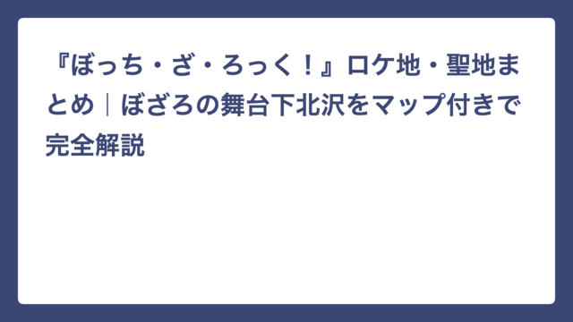 『ぼっち・ざ・ろっく!』ロケ地・聖地まとめ|ぼざろの舞台下北沢をマップ付きで完全解説