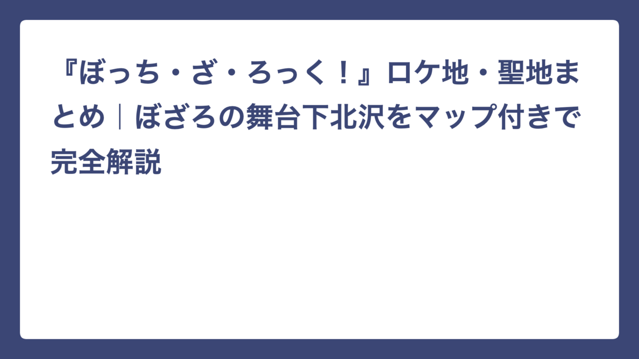 そんな思いで、下北沢とぼっち・ざ・ろっくの繋がりと魅力をまとめたガイド記事も用意しました。