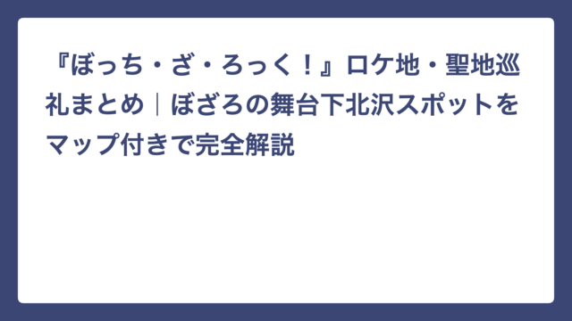 この記事では、これまでの放送回に登場した聖地(=モデルになった場所)をまるっとご紹介します。