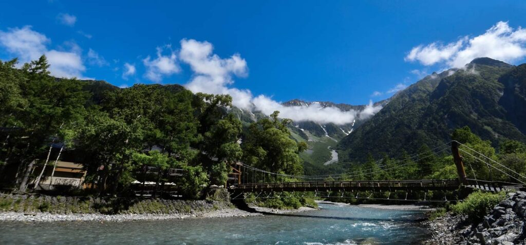 アニメ本編でも登場していましたが、河童橋周辺は特に象徴的で、川・山・空・橋が一度に収まる風景は、誰しも一度はテレビなどで見たことがあるのではないのでしょうか?