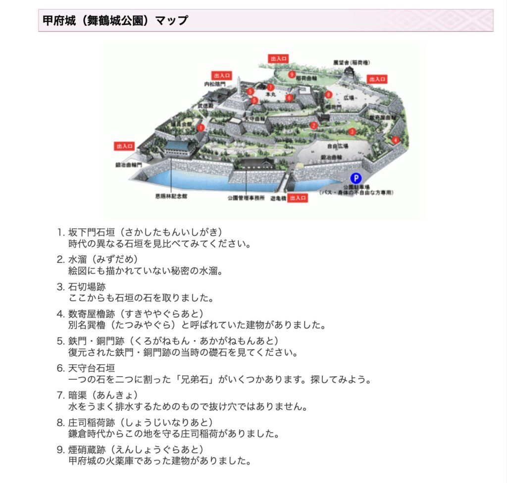 甲府城跡地の散策をする事で、自然と3人が通った一連のルートを歩く事もできますよ!